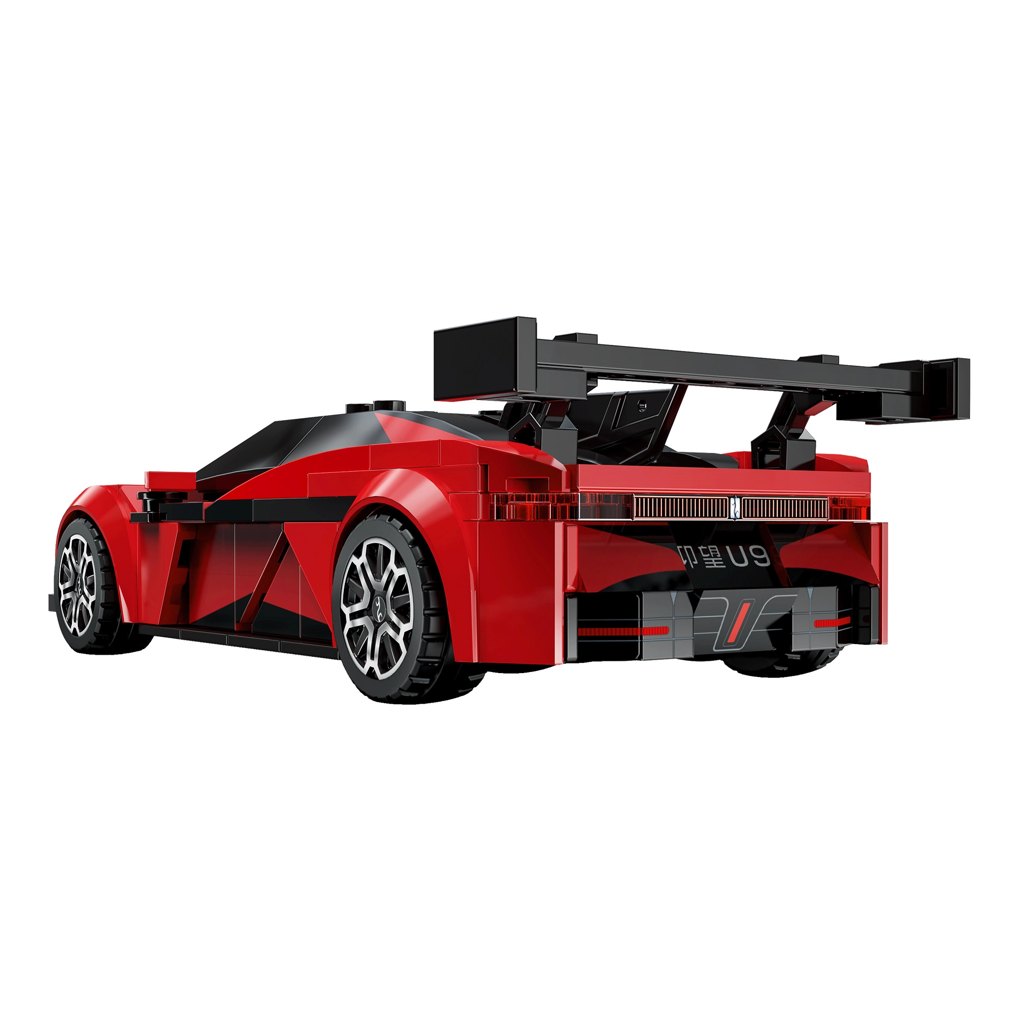 Die detailgetreu gestaltete Karosserie in Rot, präzise Felgen und ein großer Heckflügel machen das Modell YANGWANG U9 zu einem echten Blickfang.