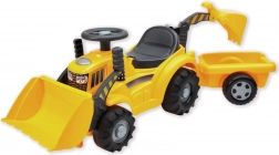 Dieser robuste Traktor mit Anhänger bietet Kindern viele Spielmöglichkeiten und fördert die Motorik. Die Bulldozer-Schaufel lässt sich leicht gegen die Baggerschaufel austauschen, sodass kleine Baumeister aufladen, abladen und transportieren können – ganz nach Lust und Laune. Dank des bequemen Sitzes mit Versteck sind Kleinigkeiten immer griffbereit.