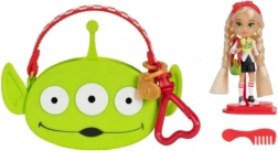 Die Mini-Puppe mit langen blonden Haaren trägt ein modisches Set mit dem Außerirdischen aus TOY STORY. Das Outfit wird durch sportliche Schuhe und eine Mini-Handtasche in Form eines Außerirdischen-Kopfes ergänzt. Ebenfalls enthalten ist eine große rosa Tragetasche mit Alien-Motiv, in der Sie die Puppe und ihre Kleinigkeiten bequem verstauen können – ideal zum Spielen zu Hause und auf Reisen.