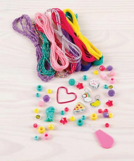 Kreiere originellen, farbenfrohen Schmuck mit Stimmung mit dem Set Make It Real Good Vibes. Im Paket findest du alles, was du für stylische Armbänder brauchst – Stickgarne, metallisches Schnurband, Perlen, Anhänger und einfache Anleitungen. Ein ideales kreatives Geschenk für Kinder und Einsteiger.