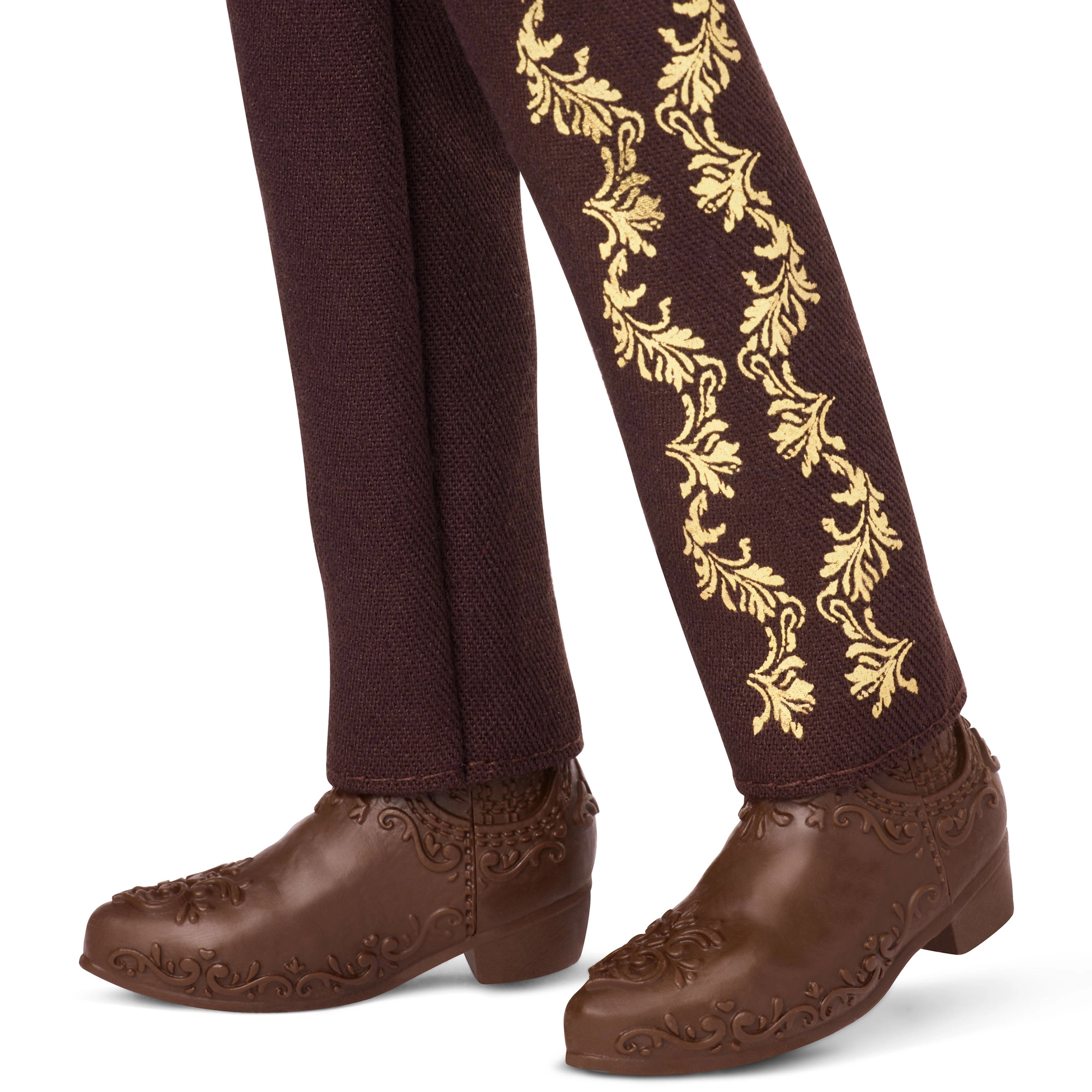 Diese einzigartige Sammler-Puppe bringt die authentische Atmosphäre der mexikanischen Día de Muertos-Feiern zum Ausdruck. Ken trägt ein verziertes Gesicht im Calavera-Stil, ein weißes Hemd mit Blumenstickerei, eine braune Weste und eine Hose mit goldenen Ornamenten, einen Gürtel und einen breiten Sombrero. Dank der sorgfältigen Ausführung wirkt er wie ein echter Mariachi.