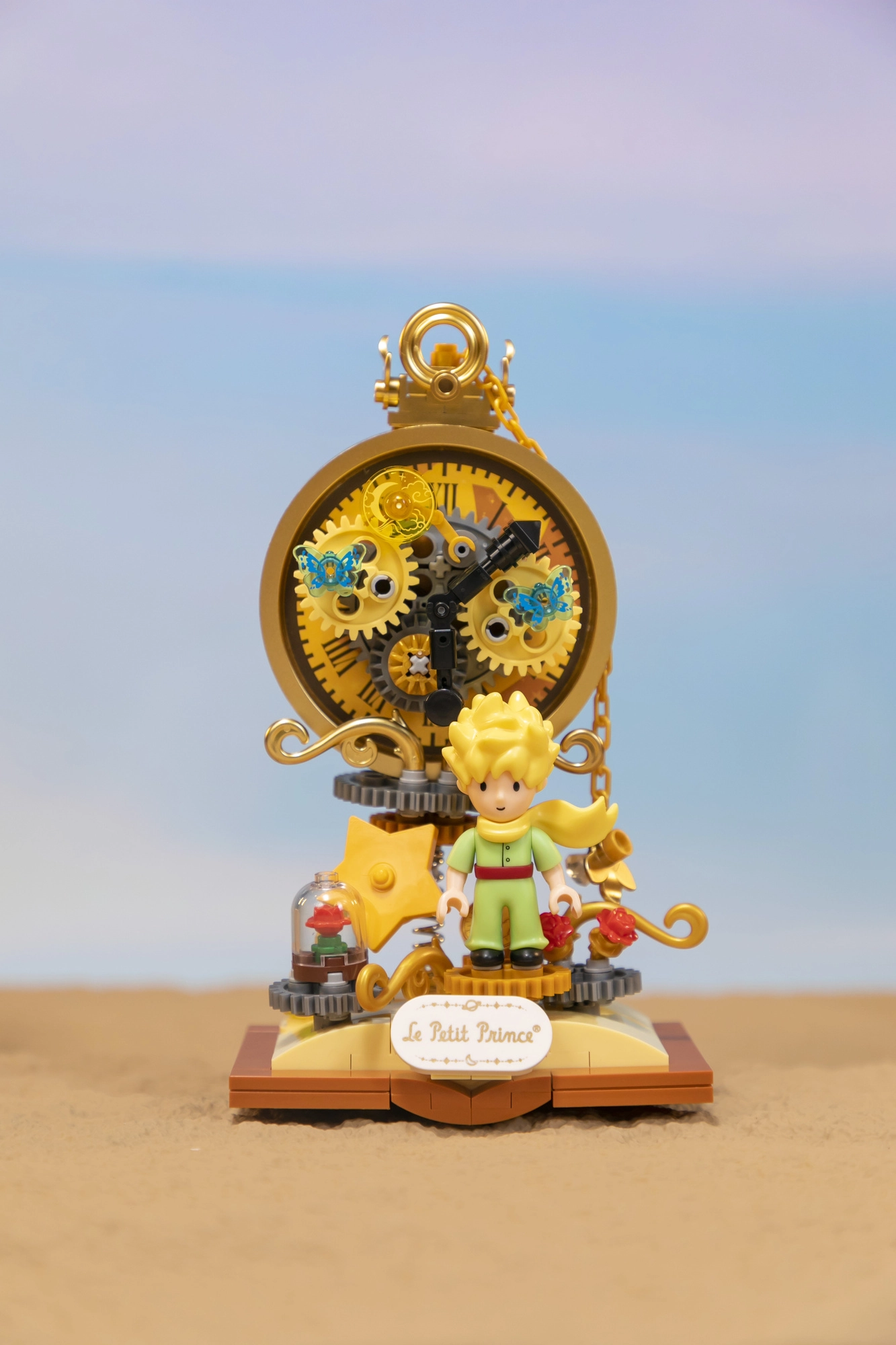 Dieses lizenzierte PANTASY-Bauset bringt den Zauber der Welt von Der kleine Prinz als eindrucksvolle Dekoration: Der kleine Prinz vor einem stilisierten Zifferblatt mit goldenen Zahnrädern, ergänzt durch die symbolische Rose unter einer Haube und sternenklare Details. Pastellfarbene Töne und feine Linien erinnern an die Originalillustrationen – so kommt das Modell im Regal, auf dem Schreibtisch oder im Kinderzimmer hervorragend zur Geltung.