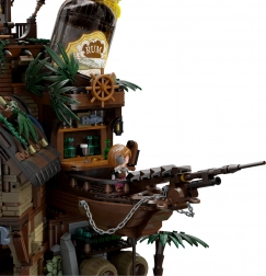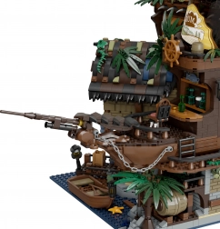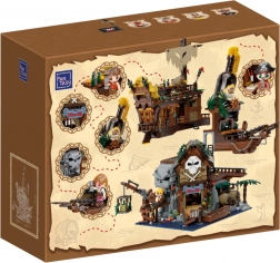 Erwecken Sie Meeresgeschichten zum Leben mit diesem reich ausgearbeiteten Piraten-Pub-Bausatz. Die Konstruktion kombiniert rustikales Holz, Ketten, Fässer, Laternen und das Totenkopfsymbol mit gekreuzten Knochen; Segel, Flagge sowie funktionale Details wie Türen, Kran und ein kleines Boot fehlen nicht. Das Modell begeistert Kinder wie erwachsene Baumeister und wird zum markanten Highlight jeder Sammlung.