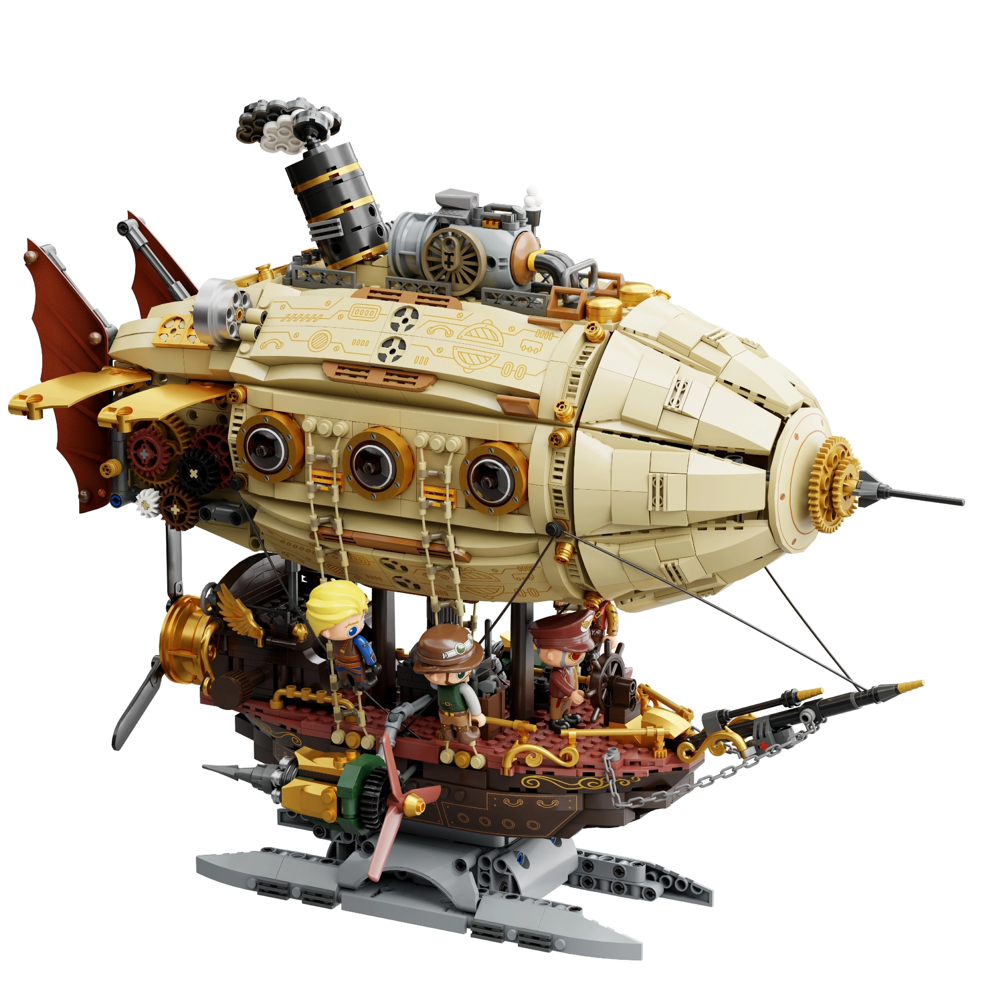 Dieses Steampunk-Luftschiff vereint elegante Retro-Ästhetik mit einzigartigen mechanischen Details. Nach dem Zusammenbau kommen der große Ballon, seitliche Propeller, Takelage und Zahnräder zur Geltung, die dem Modell einen authentischen Look und hervorragende Spielmöglichkeiten verleihen. Dank der beweglichen Teile und der durchdachten Konstruktion macht sowohl der Bau als auch die Präsentation Spaß.