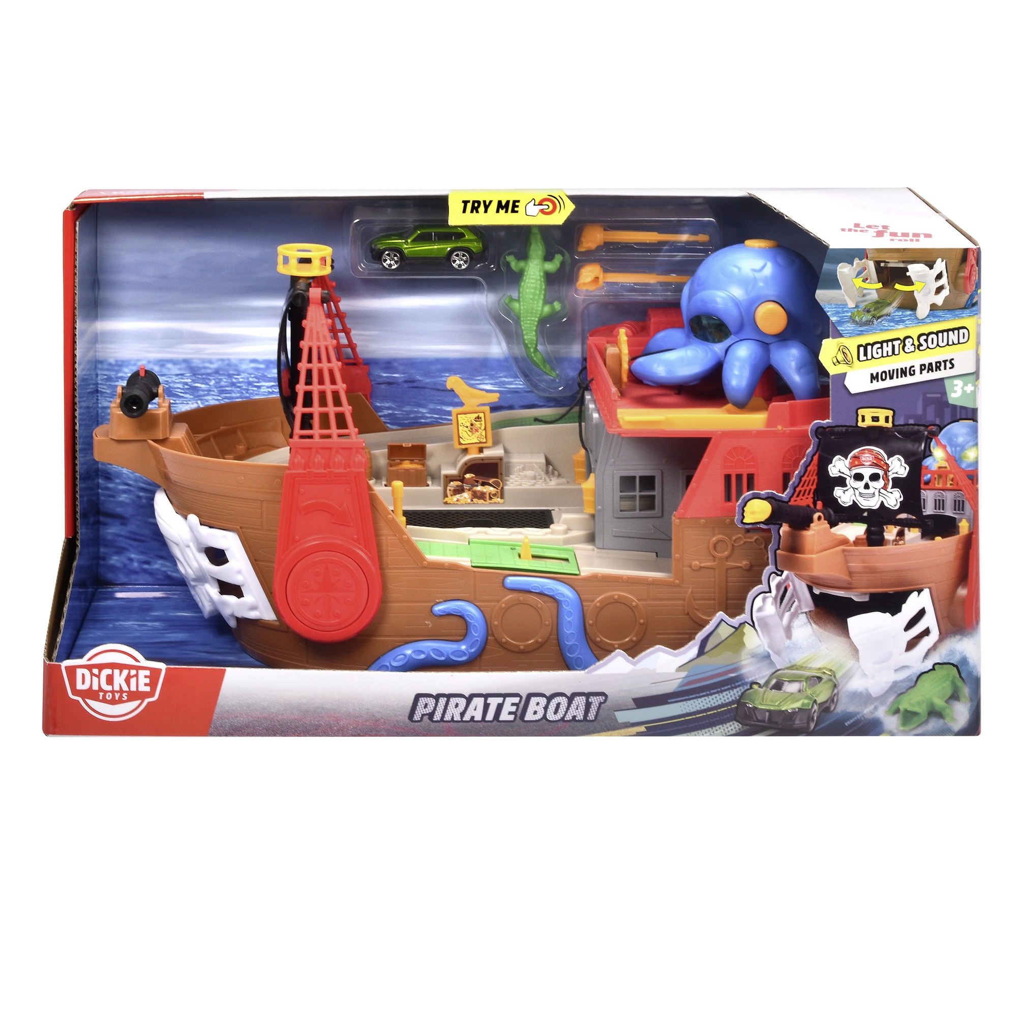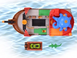 Schiff und Floß schwimmen auf dem Wasser, sodass Kinder Action in der Badewanne oder im Pool genauso genießen wie auf dem Teppich im Kinderzimmer.