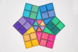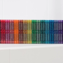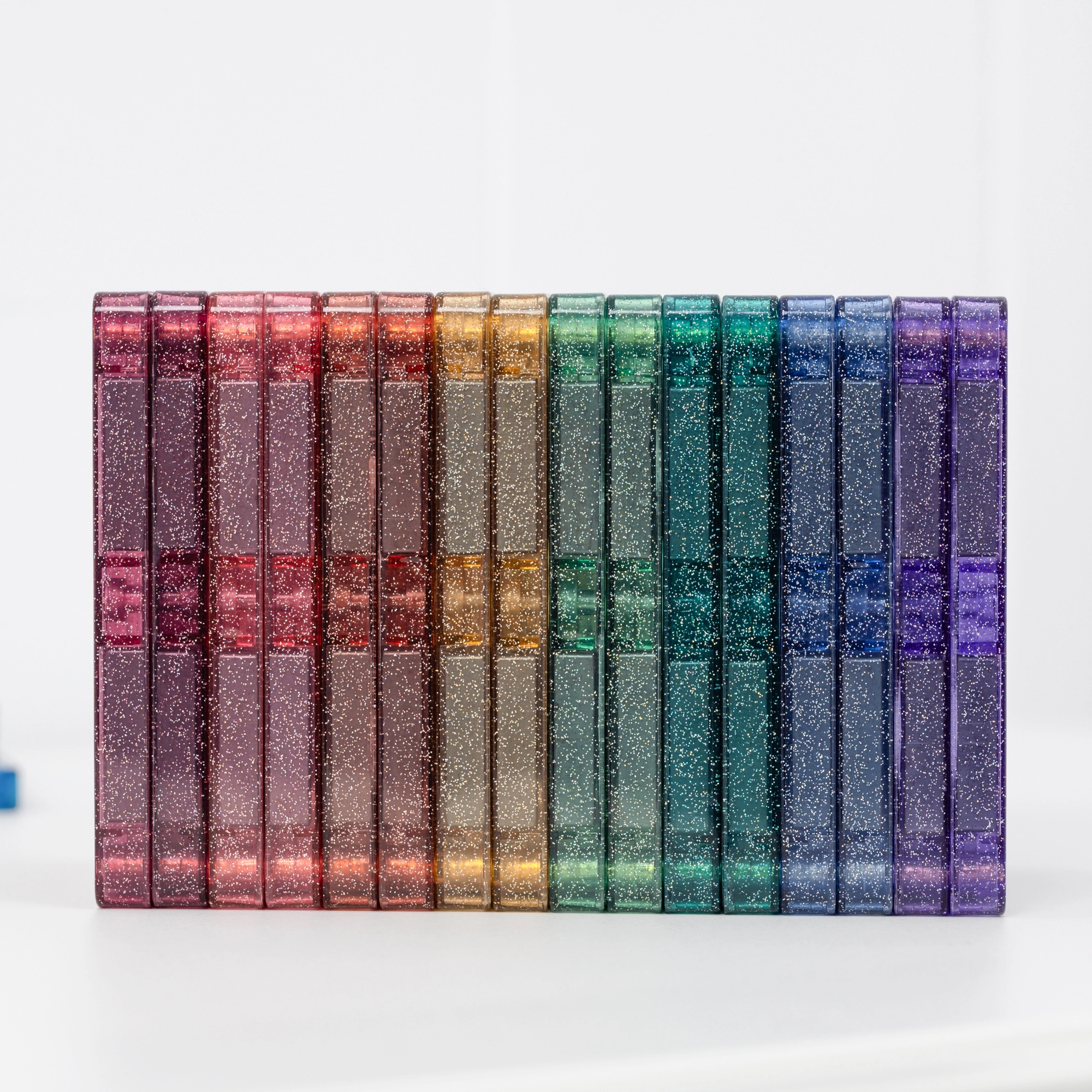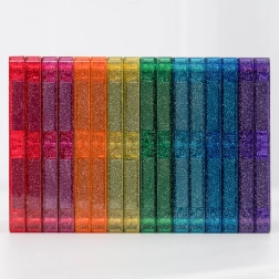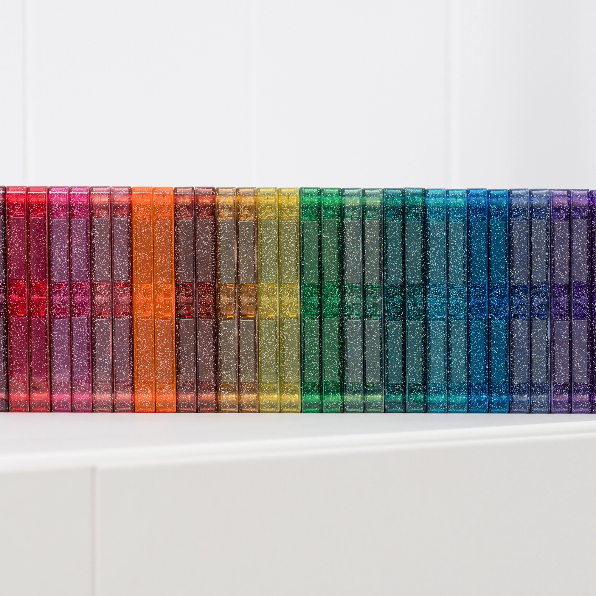 Robuste, farbechte Platten mit Glitzereffekt begeistern Kinder und fördern das Erlernen von Farben, Licht und Formen beim kreativen Spiel.
