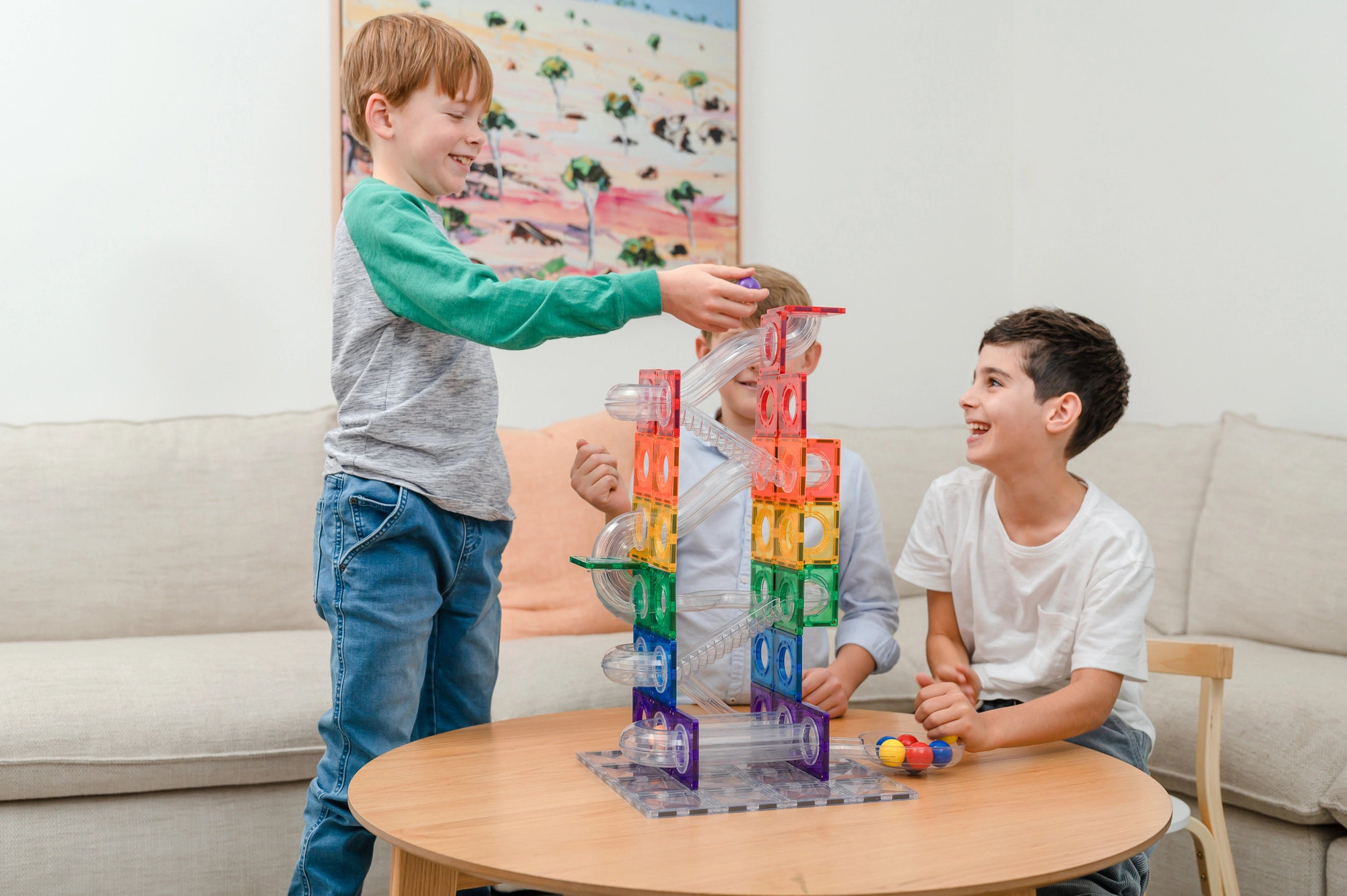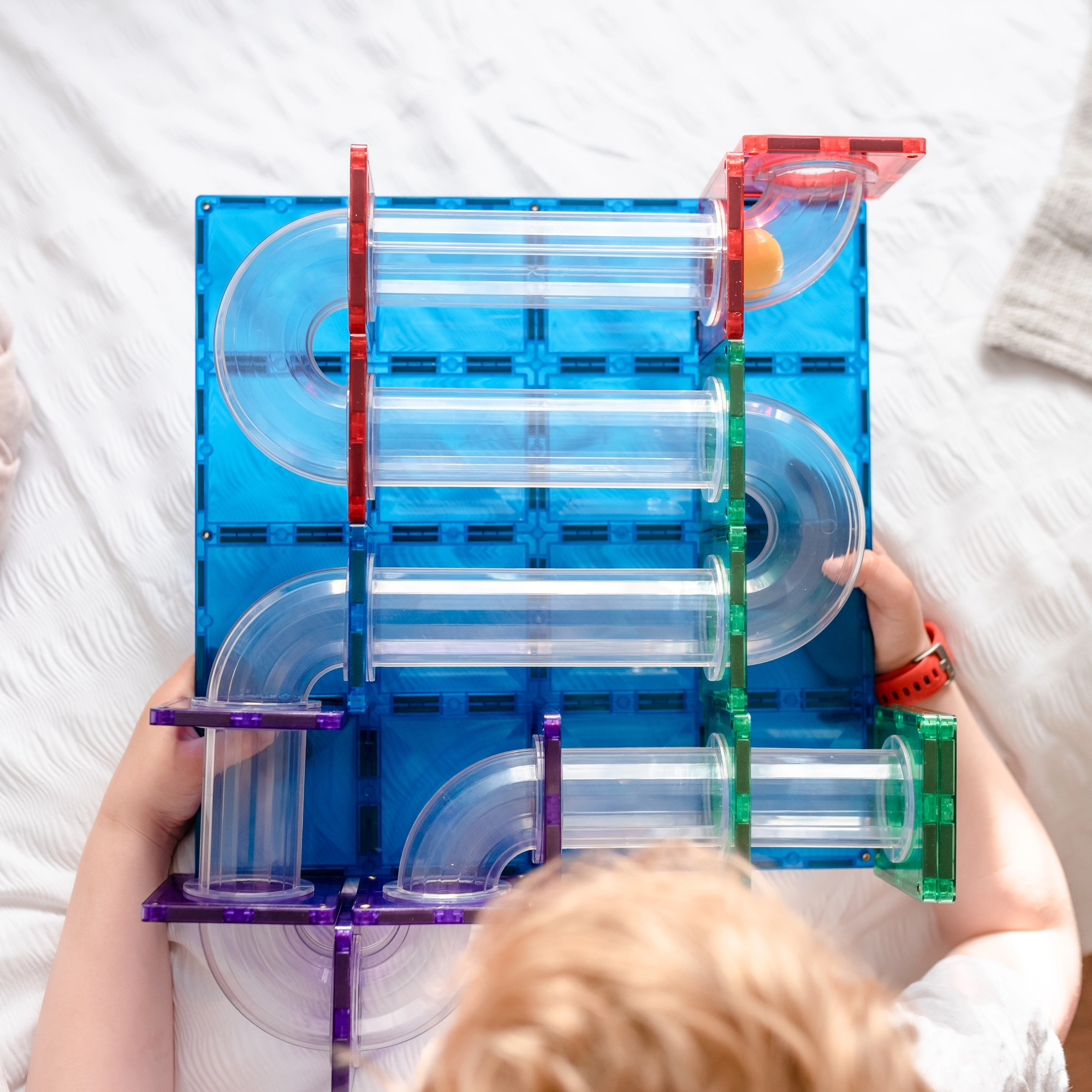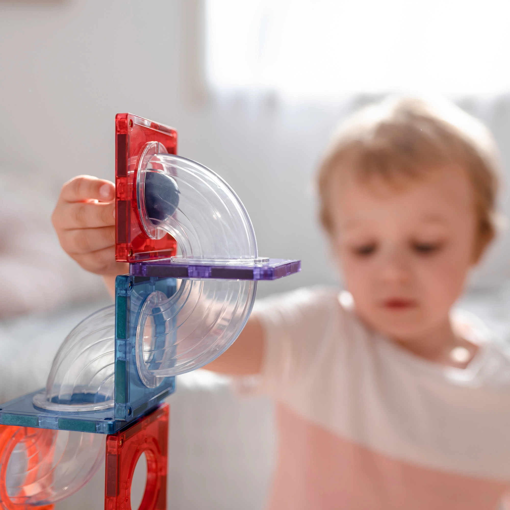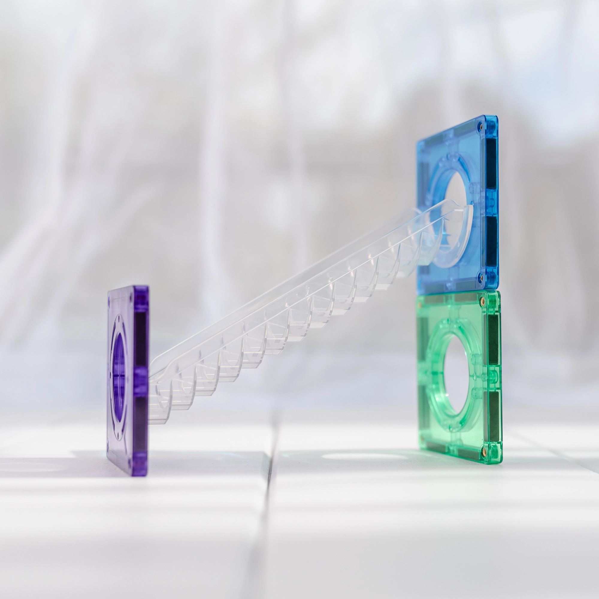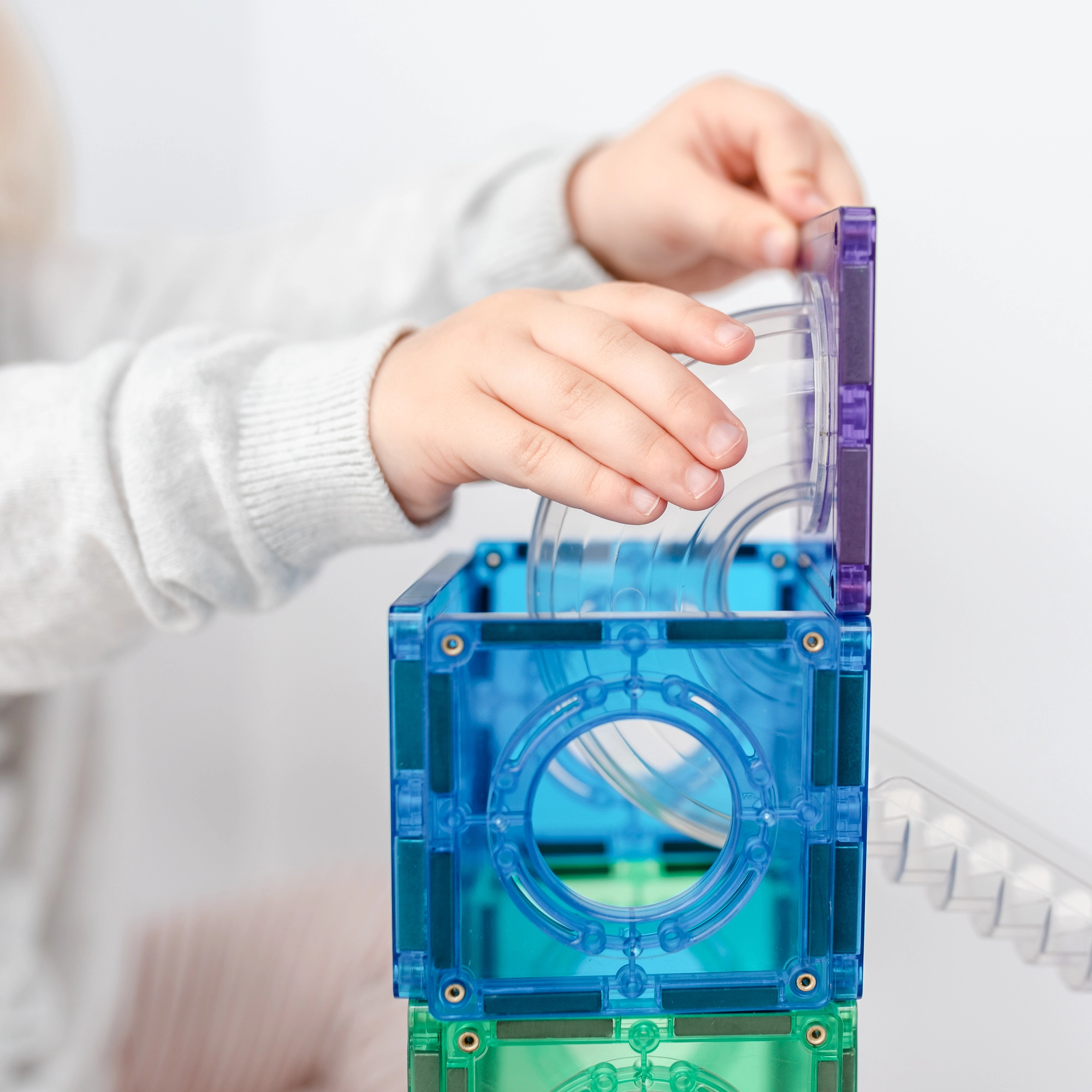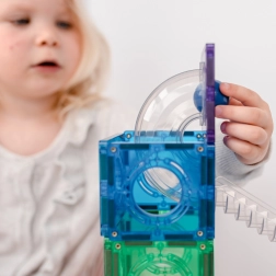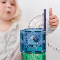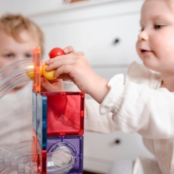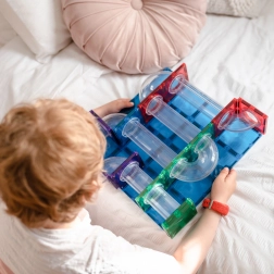 Bauen Sie bunte Türme, Brücken und ausgeklügelte Kugelbahnen, verfolgen Sie die Kugeln durch transparente Tunnel und entdecken Sie die Prinzipien von Gravitation, Geschwindigkeit und Gleichgewicht. Connetix-Platten in Regenbogenfarben haben fest vernietete Magnete, die sich von allen Seiten anziehen, sodass Konstruktionen stabil halten und das „Klicken“ beim Verbinden besonders zufriedenstellend ist.