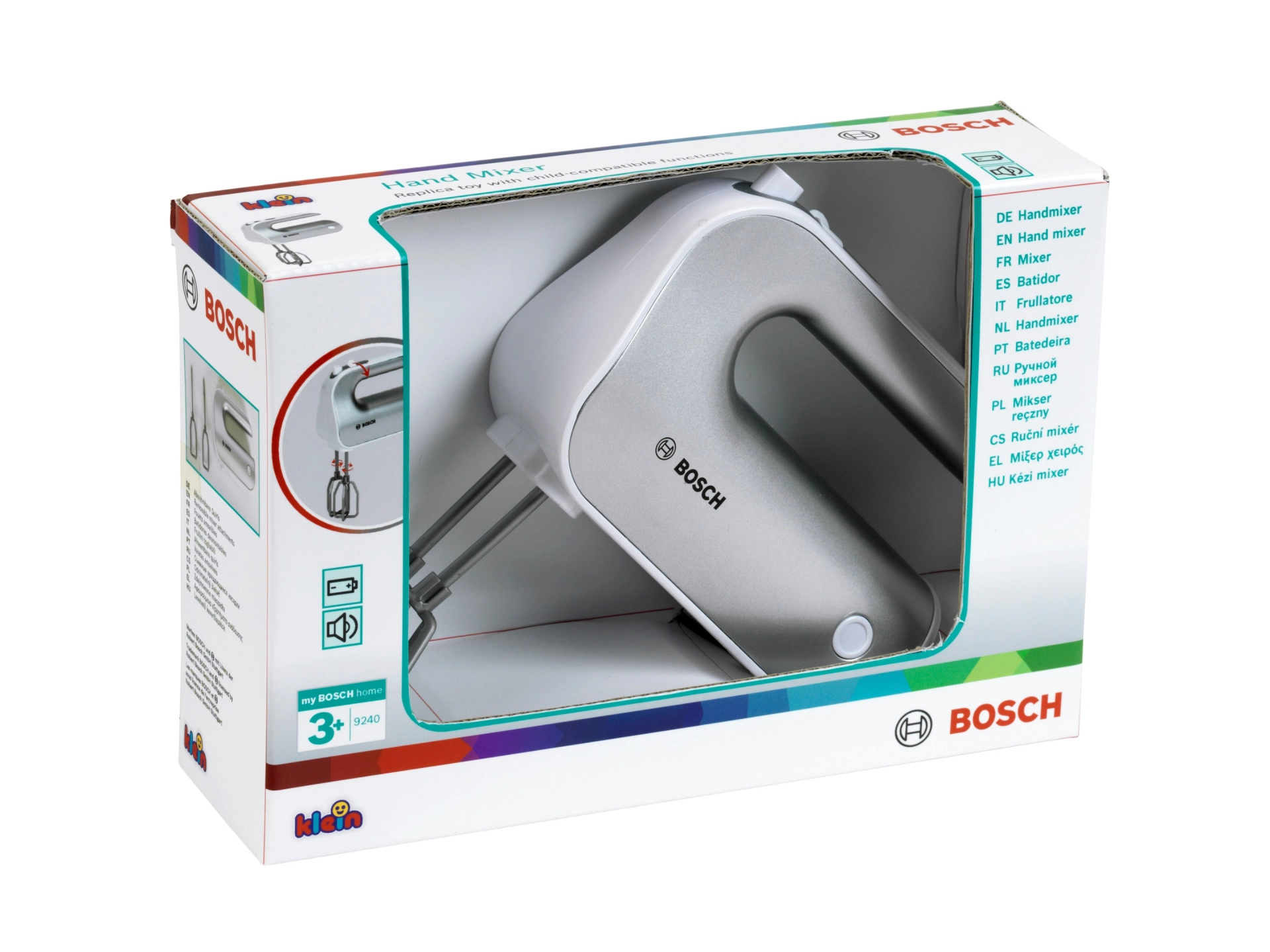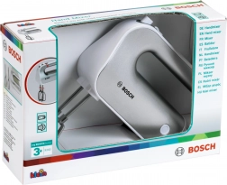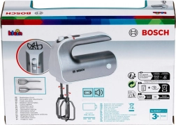 Schenken Sie Kindern Spielspaß wie in einer echten Küche. Der lizenzierte BOSCH-Mixer im silbernen Design imitiert überzeugend ein echtes Gerät: Nach Tastendruck drehen sich die Besen und ein Schiebeschalter simuliert die Geschwindigkeitswahl. Dank abnehmbarer Aufsätze erlernen Kinder auch Ordnung und Pflege.