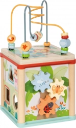 Das Spielzeug unterstützt die Entwicklung der Feinmotorik, der Hand-Auge-Koordination, des logischen Denkens und der Geduld. Kinder üben das Erkennen von Formen und Farben, das Lösen einfacher Aufgaben und lernen den Umgang mit verschiedenen Mechanismen – von Zahnrädern über Schiebebahnen bis hin zu drehbaren Klötzchen mit Tieren.