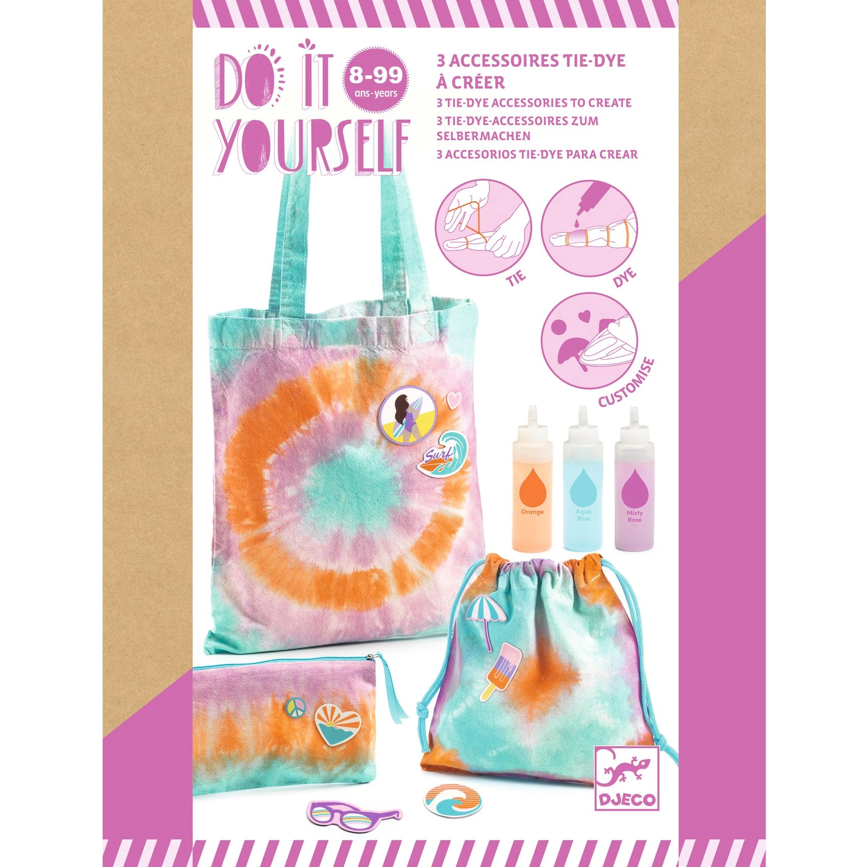 Ergänzen Sie Ihre Batik-Accessoires mit fröhlichen Aufklebern mit Sommermotiven und gestalten Sie das Design ganz nach Ihrem Geschmack.