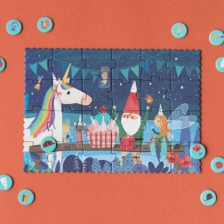 Entdecken Sie die zauberhafte Welt einer abendlichen Einhorn-Geburtstagsfeier mit dem Taschenpuzzle der Marke LONDJI. Dank des kompakten Formats passt es in die Tasche oder den Rucksack und beschäftigt Kinder hervorragend im Café, im Zug oder beim Besuch.