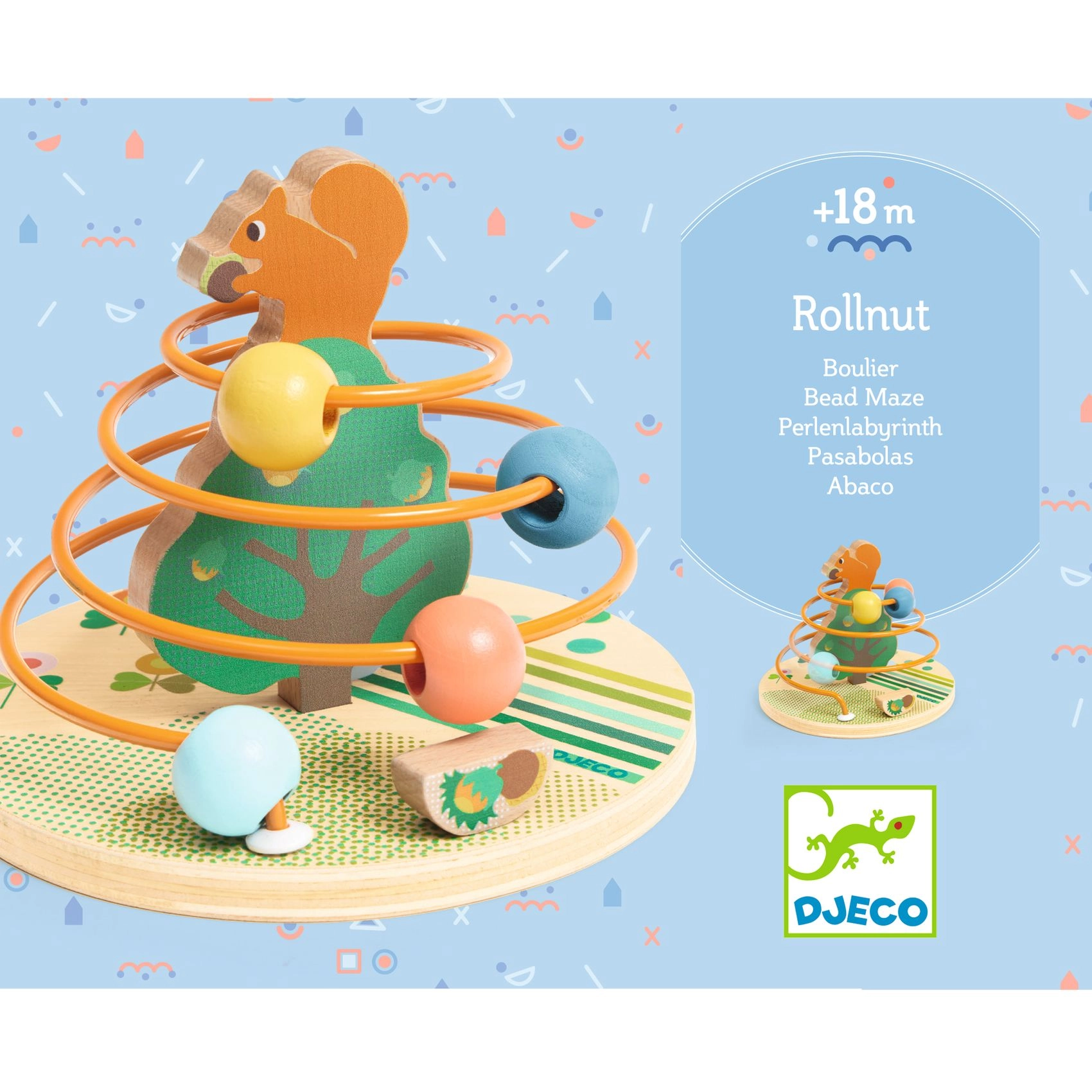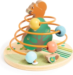 Das Spiel ist intuitiv und sicher – die Perlen werden mit kreisenden Bewegungen über die Stange geführt, sodass das Eichhörnchen seine Haselnüsse findet. Diese Tätigkeit fördert Geduld, Konzentration und verbessert motorische Fähigkeiten.
