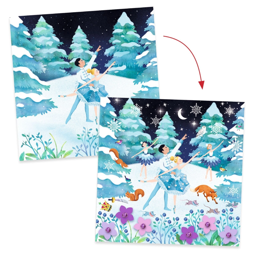 Das Kreativset Nussknacker von DJECO ist ideal für Kinder, die Basteln und Märchen lieben. Dank durchdachtem Inhalt und wunderschönen Illustrationen entstehen zauberhafte Motive, die die magische Atmosphäre des Balletts wiedergeben. Das Set eignet sich hervorragend für gemeinsames Basteln mit den Eltern oder für eigenständige Aktivitäten.