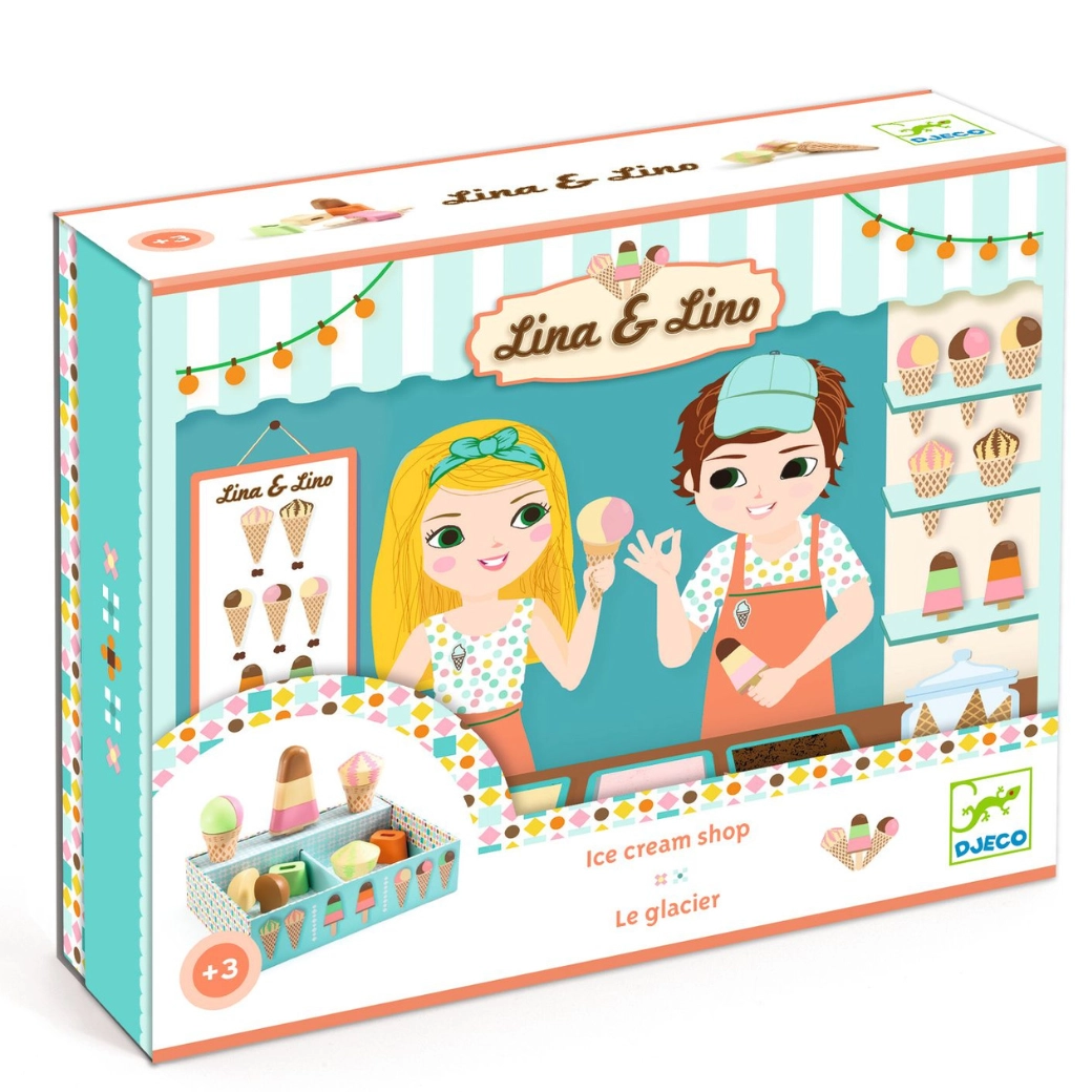 Stylische italienische Eisdiele für kleine Naschkatzen! Dieses hochwertige Holz-Set der Marke DJECO bietet alles, was Kinder für ihre eigene Eisauslage brauchen – Waffeln, Kugeln und Eis am Stiel in wunderschönen Pastellfarben. Die Teile sind so gestaltet, dass sie sich stapeln, tauschen und kombinieren lassen, wodurch Kinder Feinmotorik und logisches Denken trainieren.