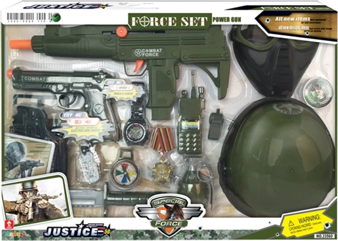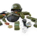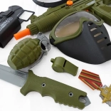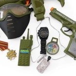 Set für kleine Soldaten mit Helm, Pistole und weiterem Zubehör.