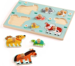 Das Holz-Einlegepuzzle von DJECO mit dem Thema Bauernhof ist das ideale erstes Puzzle für die Kleinsten. Kinder lernen, die Formen der einzelnen Teile, die Tiere und ihre typischen Umrisse zu erkennen und entwickeln gleichzeitig Augen-Hand-Koordination und Geduld.