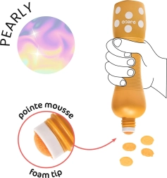 Die DJECO Schaumstifte mit perlmuttartigem Glanz sind für kleine Künstler konzipiert. Dank der breiten Schaumspitze lässt sich die Farbe gleichmäßig auftragen, sie läuft nicht und ist leicht von der Haut und den meisten Textilien auswaschbar. Der sanfte Perlmutt-Effekt verleiht jedem Bild einen magischen Glanz.