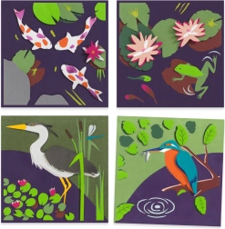 Dieses Kreativset der Marke Djeco ermöglicht es Kindern, Schritt für Schritt vier originelle 3D-Bilder zum Thema Wasser zu gestalten. Die Kombination aus Schichten, Farben und Strukturen verleiht den Werken Tiefe und einen beeindruckenden räumlichen Effekt, den Kinder lieben werden.