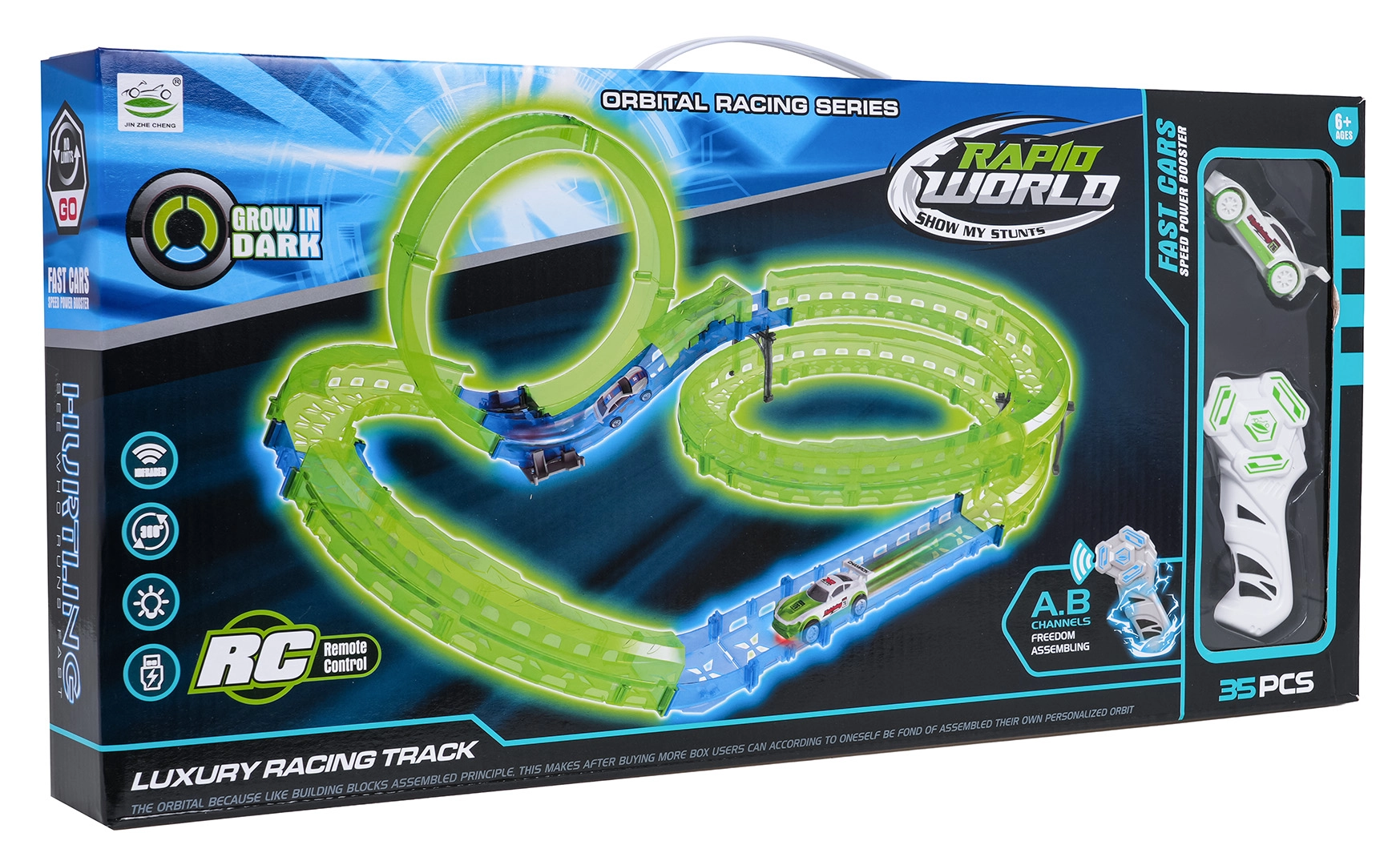 Leuchtende Rennstrecke mit RC-Auto, 35 Teile