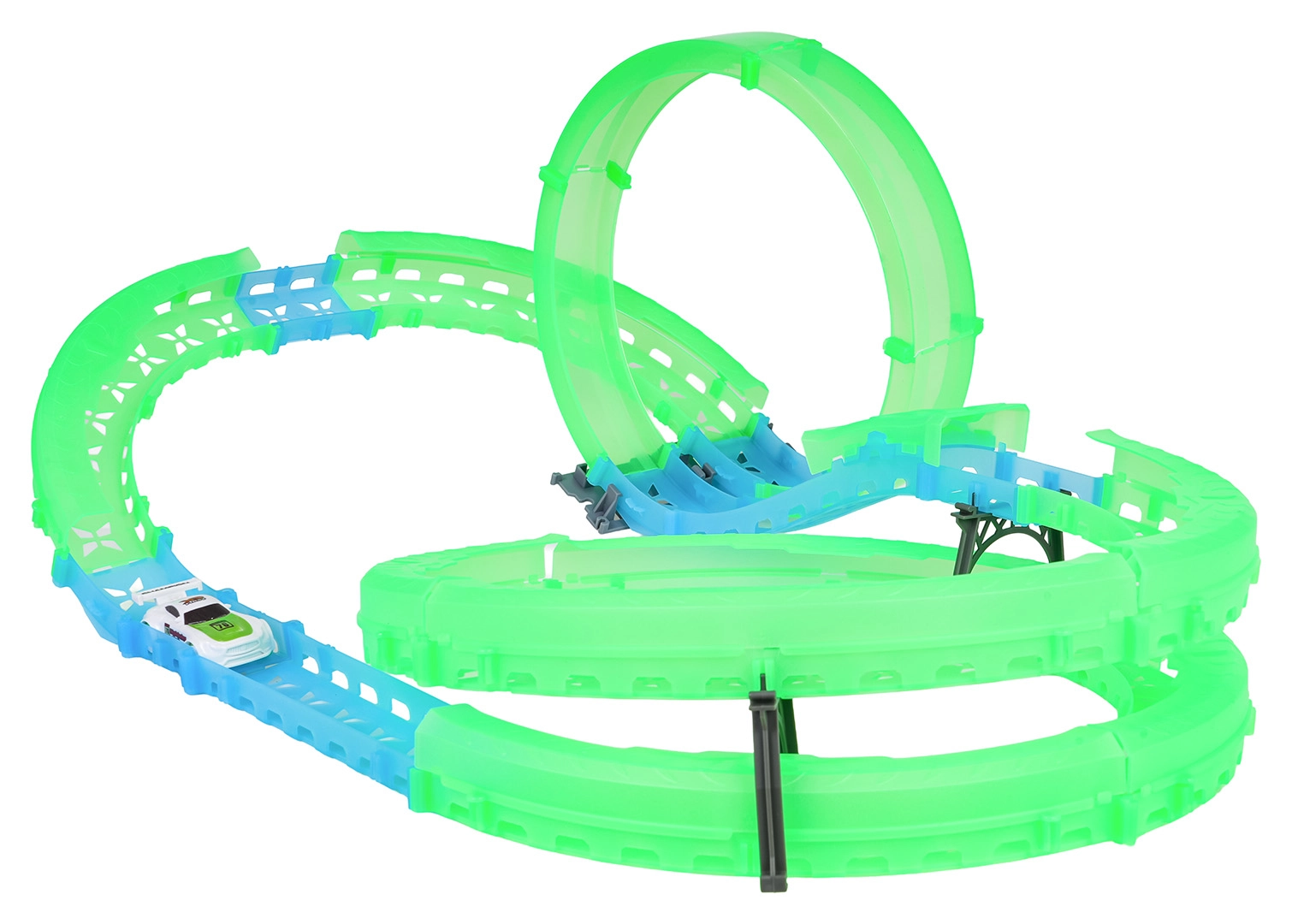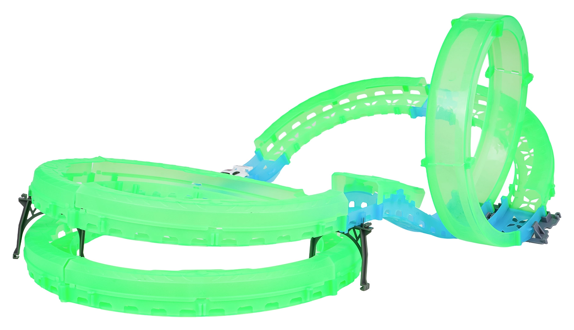 Die fluoreszierenden Teile leuchten nach dem Aufladen durch Licht, sodass die Rennen auch bei ausgeschaltetem Licht attraktiv bleiben. Tolle visuelle Effekte und noch mehr Spaß.