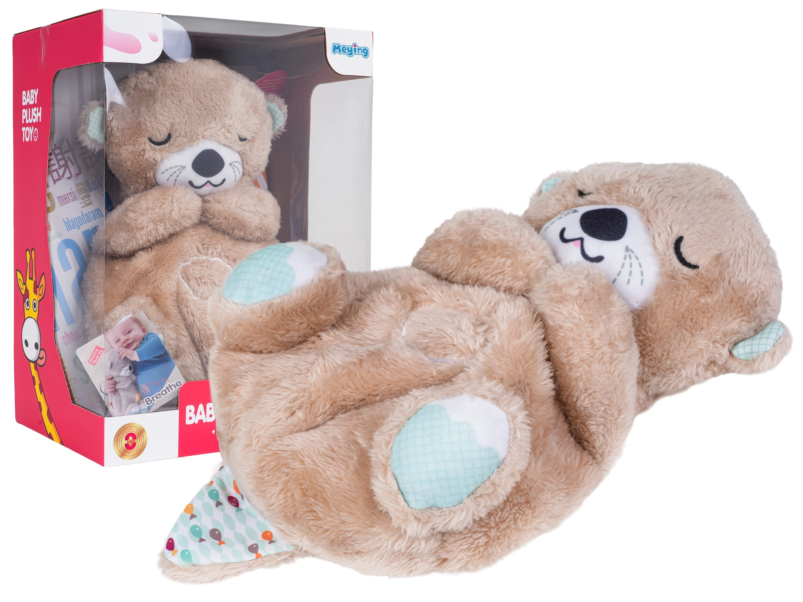 Suchen Sie einen kuscheligen Begleiter, der Ihrem Baby beim ruhigen Einschlafen hilft? Dieser interaktive Plüsch-Otter kombiniert sanftes Licht, natürliche rhythmische Bauchbewegungen, die das Atmen nachahmen, und beruhigende Klänge, um ein Gefühl von Sicherheit zu vermitteln. Das weiche Material ist sanft zur Babyhaut und ideal zum Verwöhnen und täglichen Kuscheln.