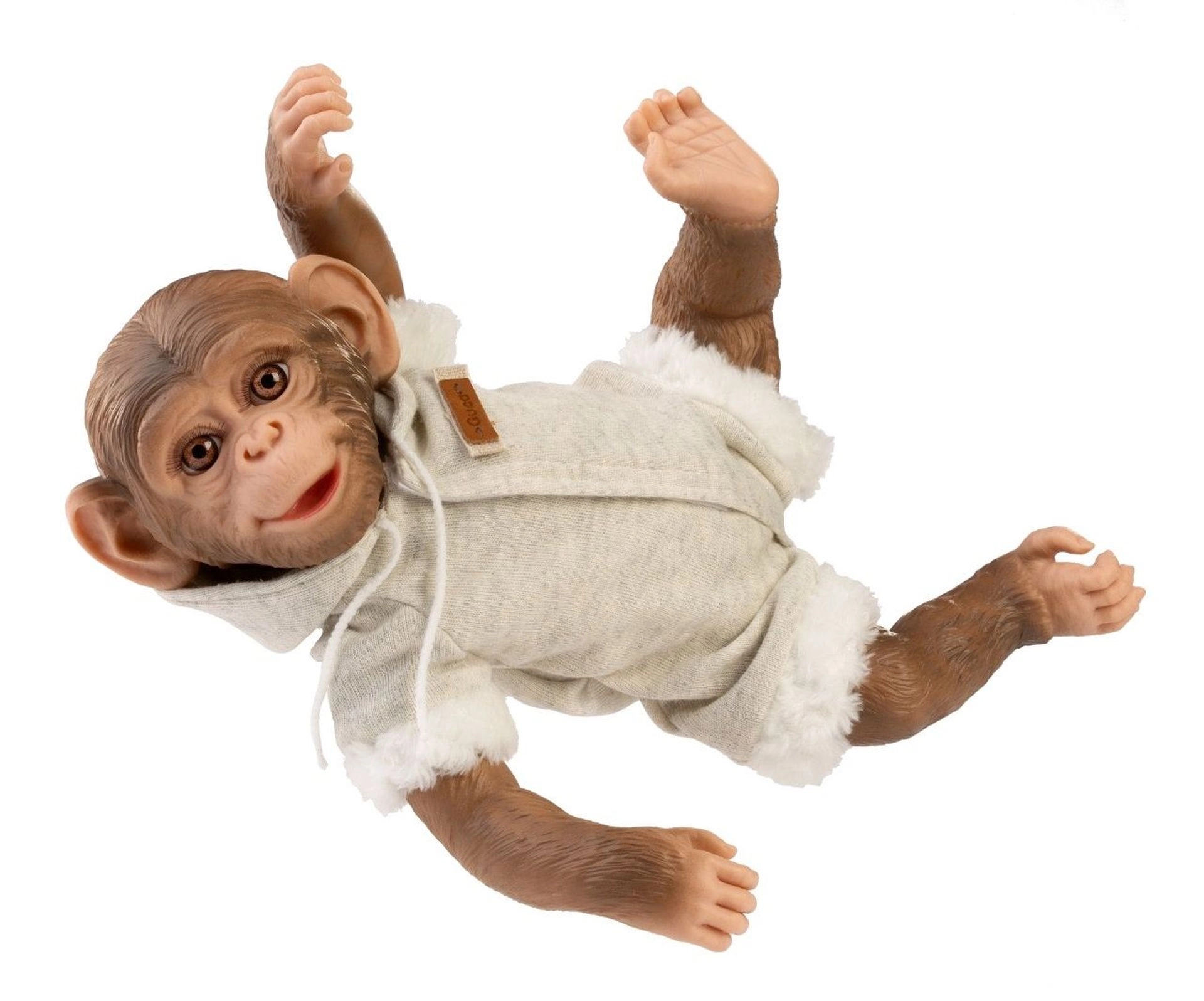 Gönnen Sie Ihrer Sammler- oder Spielpuppe einen einzigartigen Look mit diesem handgefertigten Kapuzen-Outfit für Affenbaby REBORN 32 cm. Das weiche Material, plüschige Abschlüsse und das einfache An- und Ausziehen sorgen für angenehme Nutzung und einen hübschen, warmen Look. Hergestellt in Spanien, geeignet ab 3 Jahren.