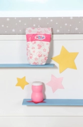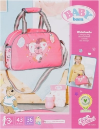 Die Tasche enthält eine Wickelauflage, eine Ersatzwindel und eine Puderdose – Kinder haben die komplette Ausstattung für die Pflege ihrer Puppe stets griffbereit.