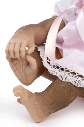Dieses elegante Set umfasst ein rosa Kleidchen mit weißem Kragen und Spitze, passende Bloomer sowie eine gestrickte weiße Mütze mit rosa Schleife. Sorgfältige Details wie fein gepunkteter Stoff, Spitzenbesatz und bequeme Schnitte verleihen Ihrer Reborn-Äffchenpuppe einen authentischen und charmanten Look.