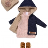 Das Kapuzenjäckchen und gestrickte Details halten die Puppe warm, während die Schühchen dem Outfit einen realistischen Touch verleihen.