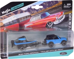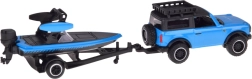 Entdecken Sie die attraktive Kombination aus Offroad-Ikone und Wasserabenteuer: Der FORD Bronco 2021 im Maßstab 1:64 zieht einen Anhänger mit elegantem Boot. Das Modell überzeugt mit Metallkarosserie, präzisen Linien und kontrastierenden Akzenten, die den authentischen Look unterstreichen. Anhänger und Boot lassen sich leicht abnehmen – für noch mehr Spielideen.