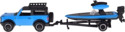 Dank realistischer Formgebung, Details wie der Anhängerkupplung, dem Dachträger und dem Außenbordmotor des Boots wirkt das Set sehr originalgetreu und eignet sich ideal sowohl zum Spielen als auch zum Ausstellen. Die blaue Farbgebung verleiht dem Modell einen modernen, dynamischen Charakter.