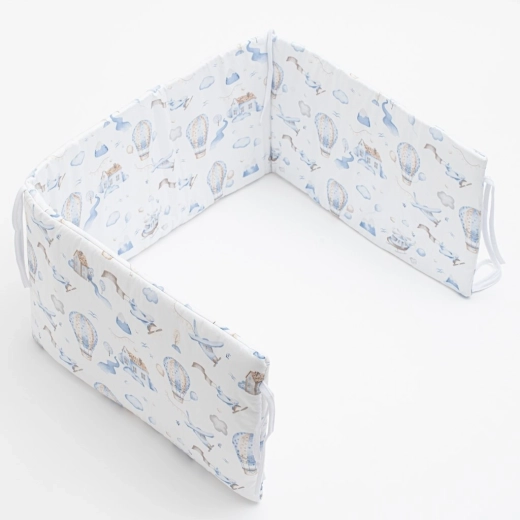 Praktische Bänder ermöglichen eine schnelle und sichere Befestigung am Bett. Der farbechte Druck mit beruhigenden Motiven blättert nicht ab und färbt die Kleidung nicht ab. Die hypoallergene Füllung hemmt die Vermehrung von Mikroorganismen und Schimmel, wodurch die Umrandung auch für empfindliche Kinder geeignet ist.
