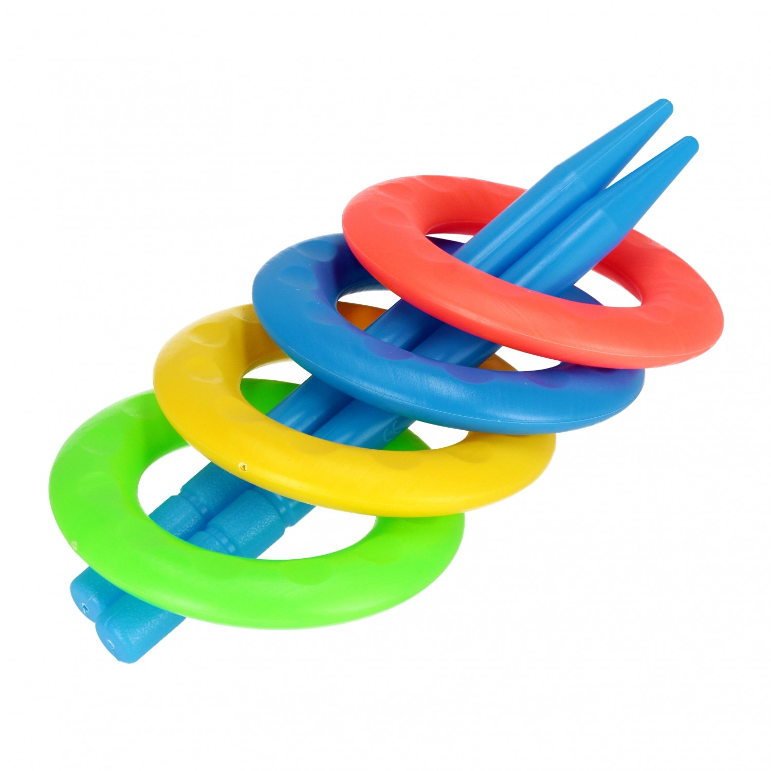 Der Lieferumfang umfasst 2 Stäbe und 4 Ringe, sodass sich leicht Wettbewerbe für Einzelne und Teams organisieren lassen. Dank der kompakten Maße lässt sich das Set bequem in den Garten, in den Park oder in den Urlaub mitnehmen.