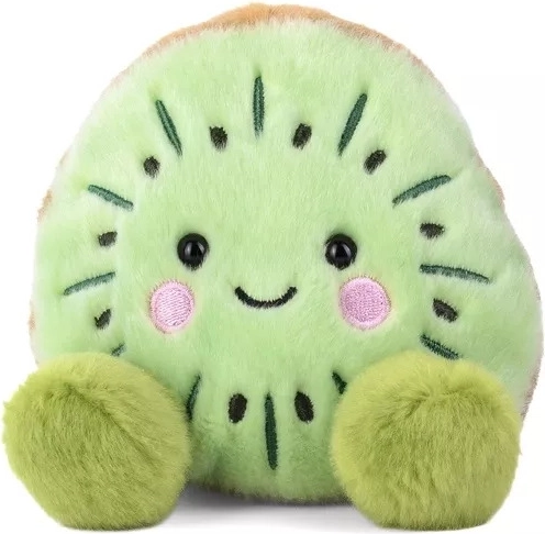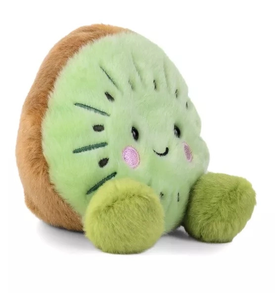 Das Palm Pals Plüsch-Kiwi ist klein, aber maximal niedlich – ein hellgrünes Inneres mit kleinen Samen, brauner Rand und zarte rosige Bäckchen verleihen ihm seinen besonderen Charme. Durch die kompakten Maße passt es bequem in die Hand, perfekt für unterwegs, die Schultasche oder den Schreibtisch.