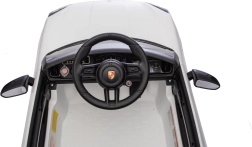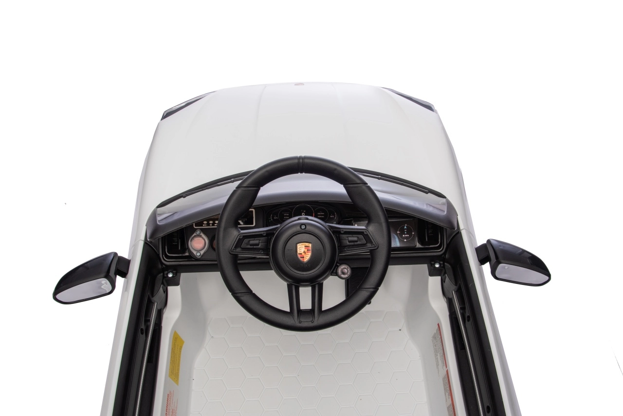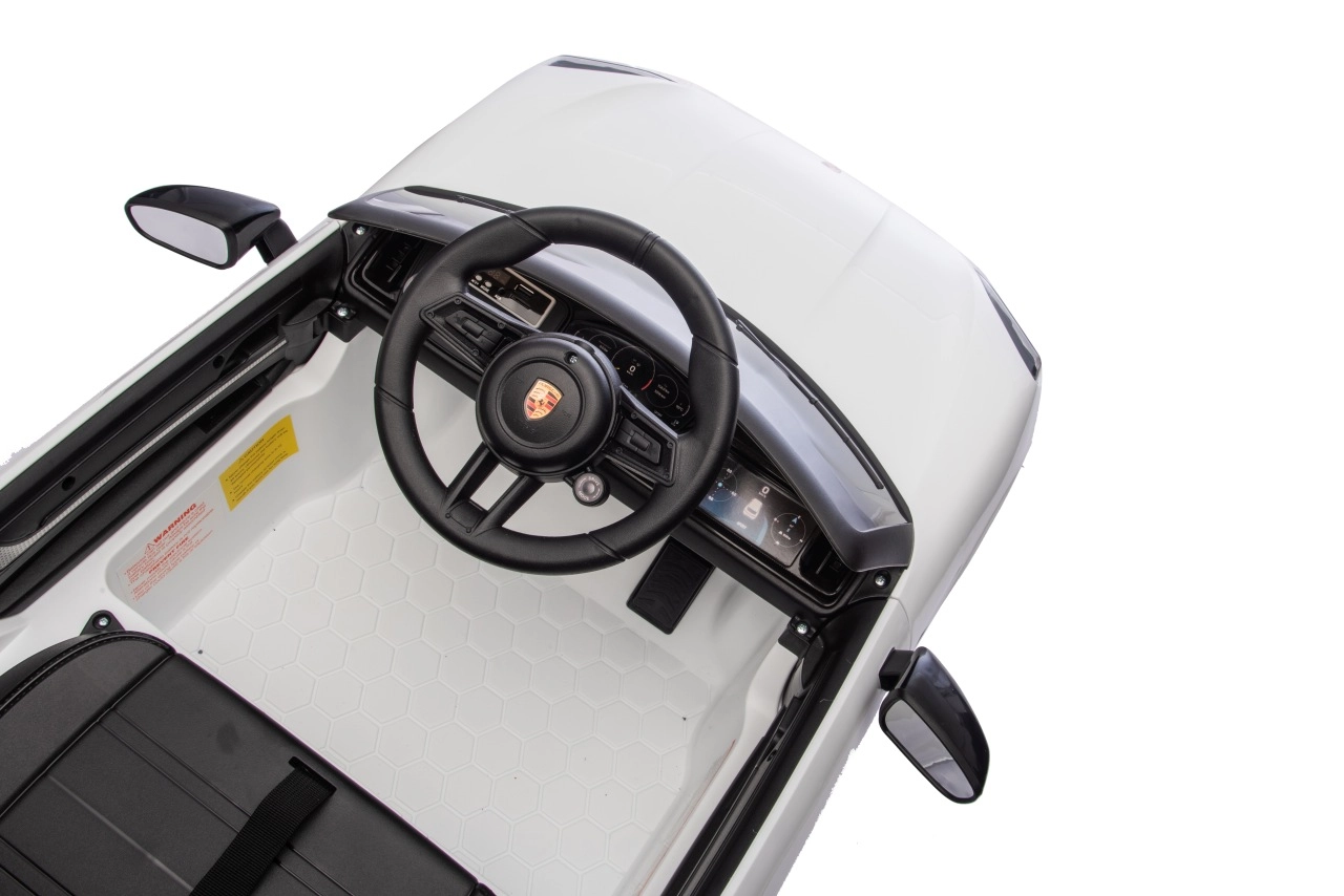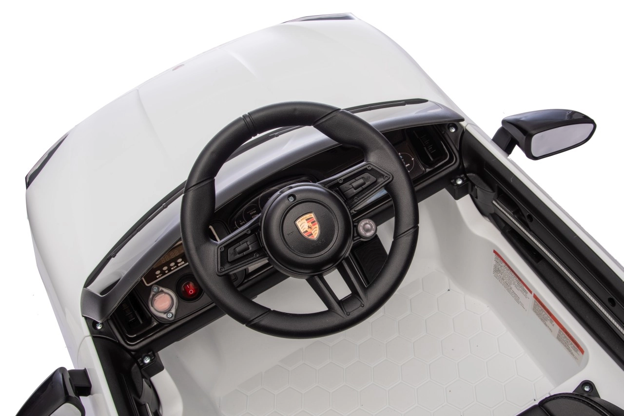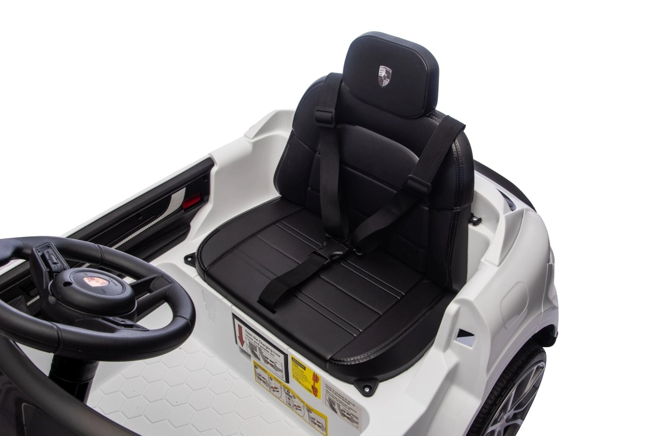 Für maximale Sicherheit für Eltern und Kinder gibt es eine 2,4-GHz-Fernbedienung mit drei Geschwindigkeiten und einer Not-Stopp-Taste. Das Interieur begeistert mit einem schwarzen Sitz aus Kunstleder mit Gurt, einem Funktionspanel mit MP3/Bluetooth/FM sowie Hup- und Soundtasten am Lenkrad. Öffnende Türen, LED-Leuchten und hochwertige Verarbeitung sorgen für einen attraktiven Look und täglichen Spielspaß.