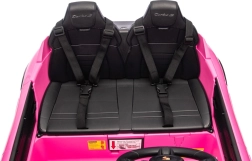 Die 2,4‑GHz-Fernbedienung bietet 3 Geschwindigkeiten und eine Not‑Stop‑Taste. Die Soft‑Start‑Funktion verhindert ruckartiges Anfahren, Sicherheitsgurte halten die Kinder sicher im Sitz.