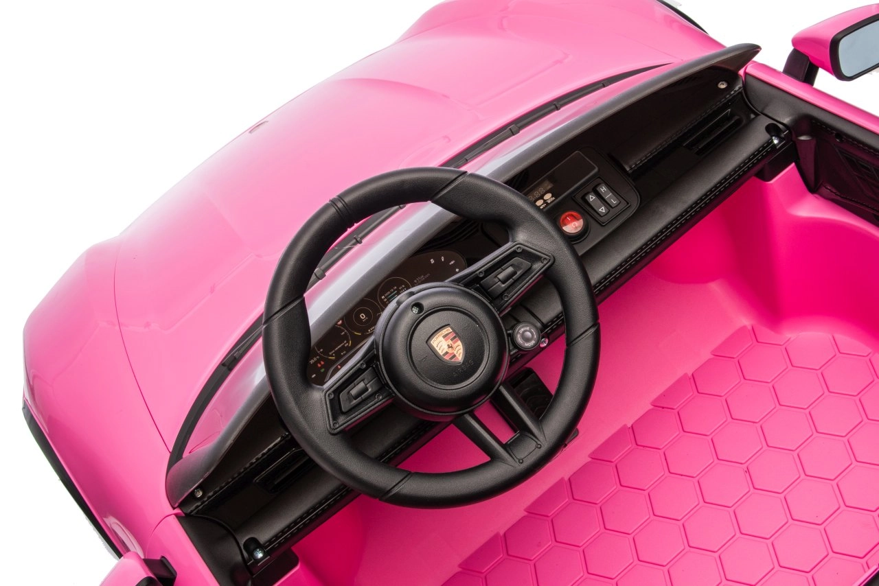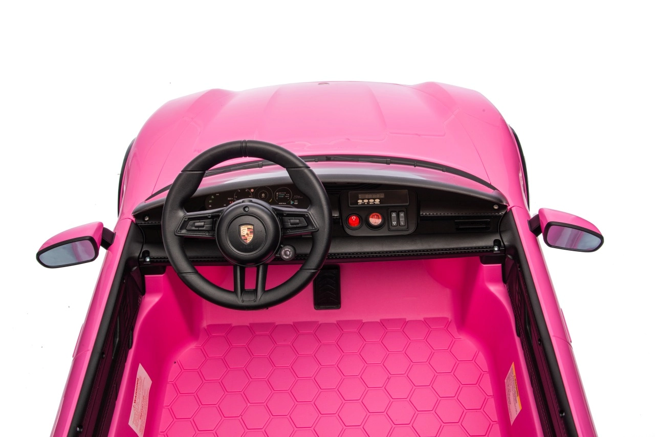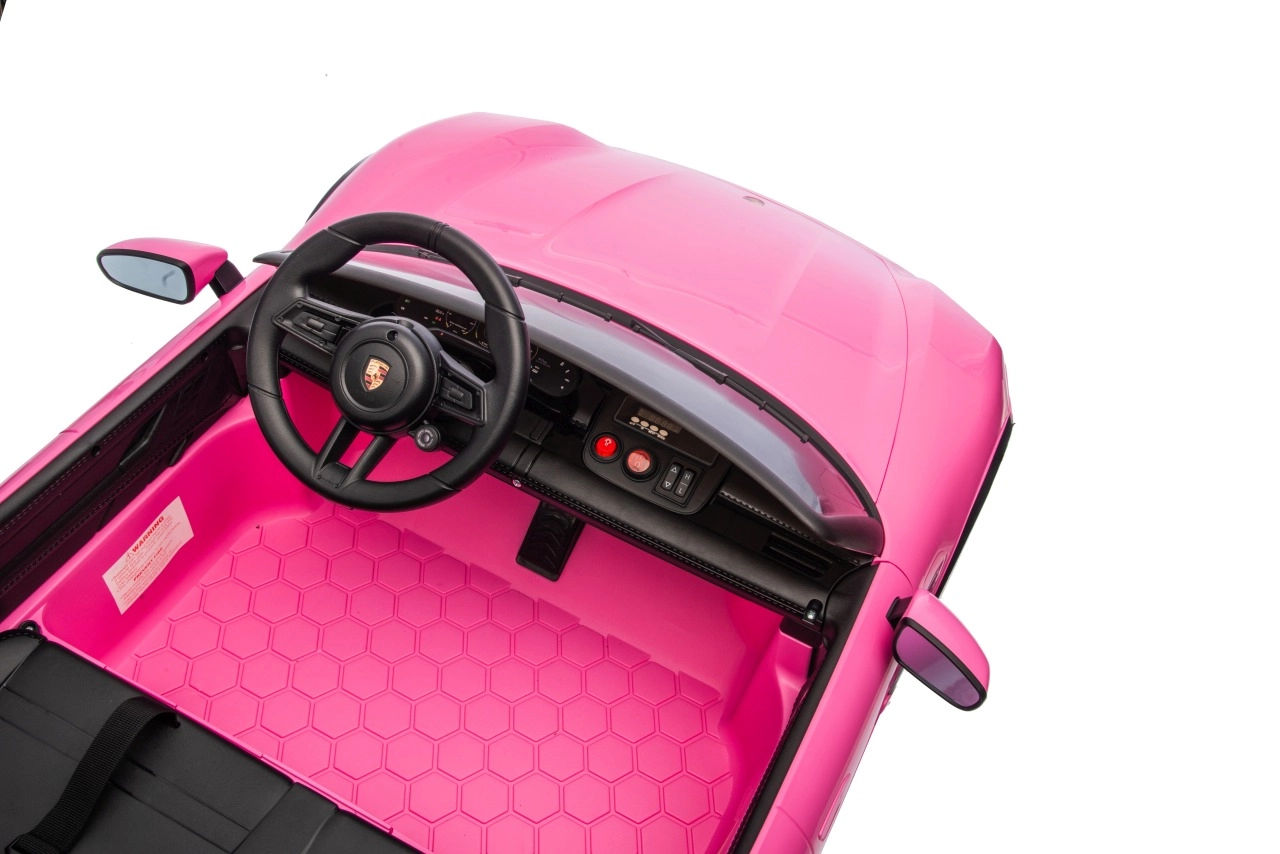 Ein wahr gewordener Traum kleiner Fahrer: Das lizenzierte, vom Porsche Taycan Turbo S inspirierte Auto besticht durch realistische Außen- und Innenraumdetails, einen Doppelsitz aus schwarzem Kunstleder sowie komfortables Fahren dank EVA-Rädern und rundum Federung. Die starke 24V-Batterie und zwei 90‑W‑Motoren liefern gleichmäßige Leistung, während die Soft‑Start-Funktion sanft und ohne Ruckeln anfahren lässt.