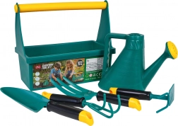 Im Set finden Sie eine Schaufel, Harke, Gabel/Kultivator, Kelle (Spachtel) und eine Gießkanne mit abnehmbarer Brause. Alles besteht aus hochwertigem, glattem Kunststoff, angenehm anzufassen und leicht zu reinigen. Ideal zum Spielen im Garten, auf dem Balkon und im Sand.