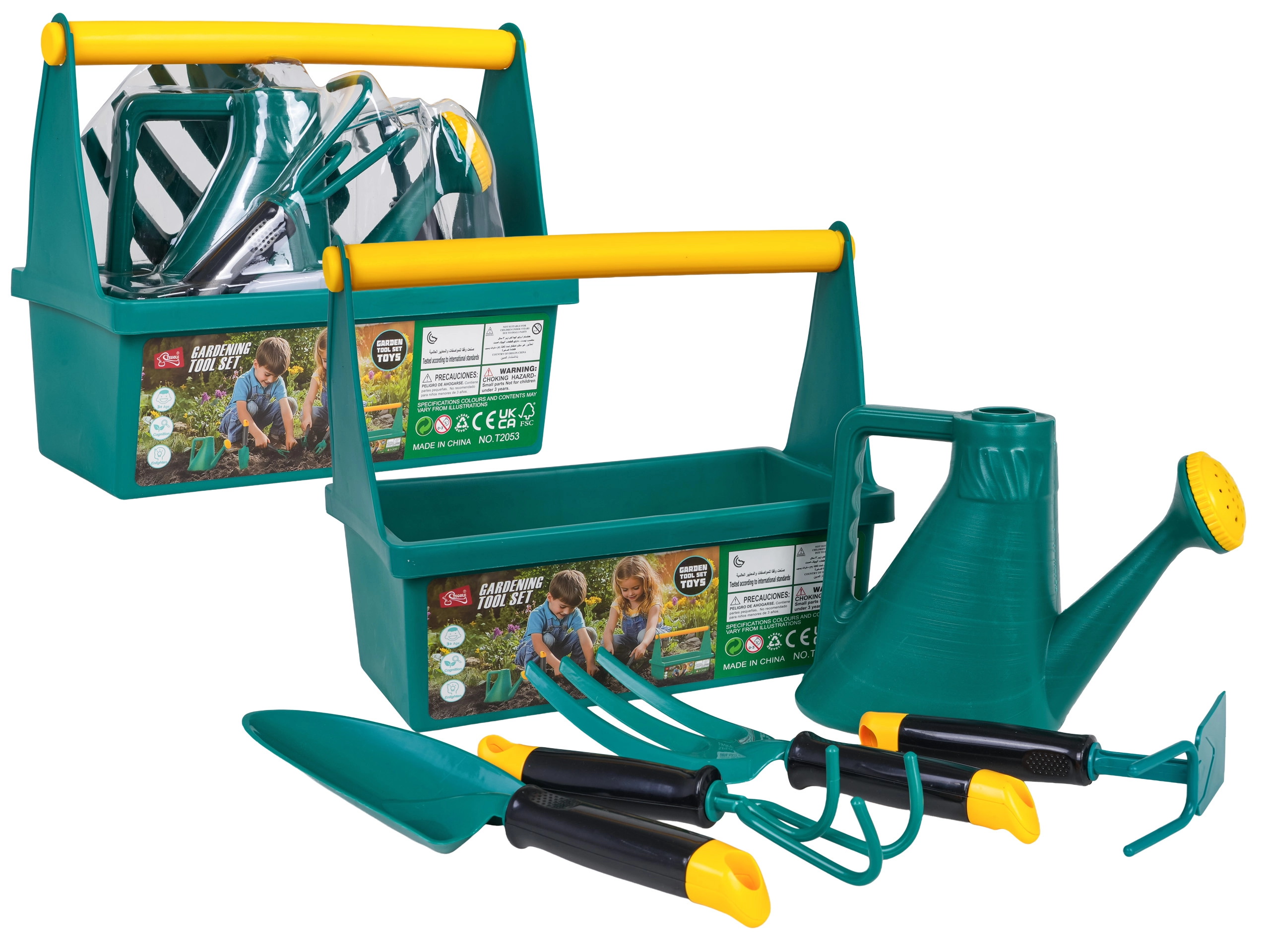Entdecken Sie die Freude am Gärtnern mit diesem Mega-Set für kleine Gärtner für Kinder ab 3 Jahren. Sicheres und robustes Kunststoffwerkzeug sieht echt aus und fördert kreatives Spiel an der frischen Luft. Enthalten sind eine praktische tragbare Box, eine Gießkanne und grundlegende Handwerkzeuge zum Harken, Graben und Gießen.