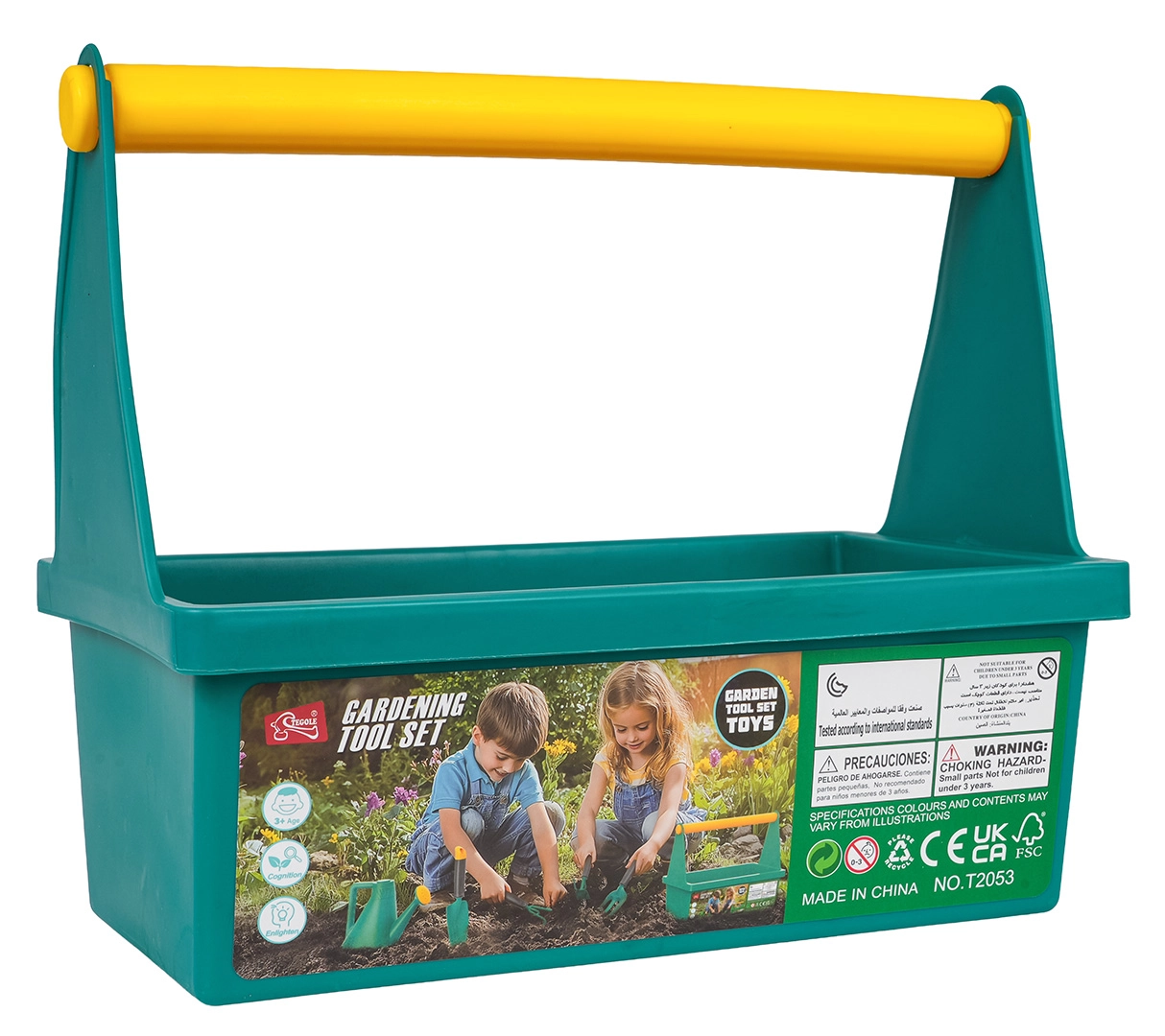 Dieses Gartenset für Kinder wurde mit Fokus auf Sicherheit, Langlebigkeit und Spaß entwickelt. Realistisch wirkende Werkzeuge mit ergonomischen Griffen helfen Kindern, ihre Feinmotorik, die Beziehung zur Natur und Verantwortungsbewusstsein bei der Pflanzenpflege zu entwickeln. Dank der tragbaren Tasche/Box haben kleine Gärtner alles stets griffbereit.
