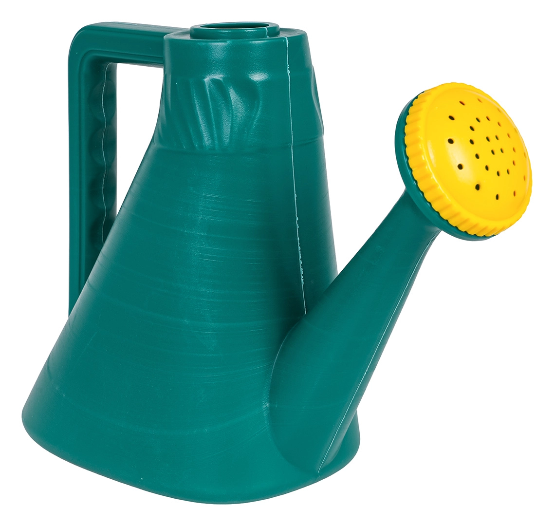 Gießen macht Spaß dank der leichten Kunststoff-Gießkanne mit abnehmbarer Brause, die das Wasser in feinen Regen zerstäubt.