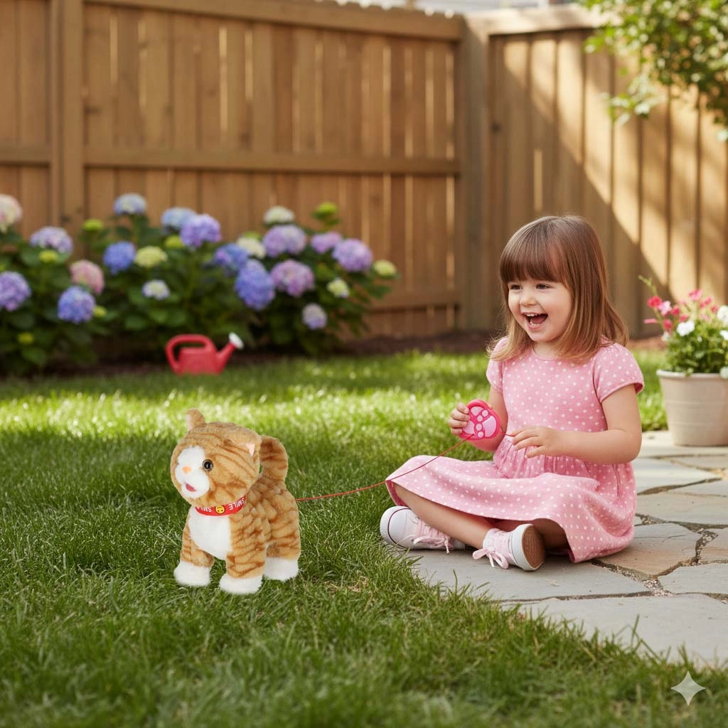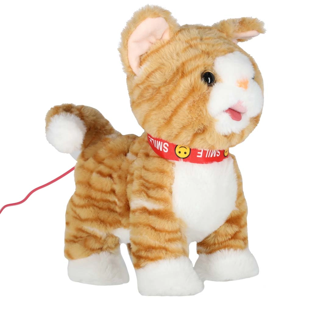 Suchen Sie ein kuscheliges Spielzeug, das gleichzeitig Fantasie und aktives Spiel fördert? Diese interaktive Katze hat einen weichen, angenehmen Plüschkörper, ein farbenfrohes Halsband und einen praktischen Hand-Controller in Pfotenform. Durch Drücken der Taste läuft die Katze los, begleitet von Geräuschen und Melodien.