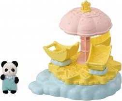 Im Set enthalten ist eine niedliche Figur eines kleinen Pandas mit beweglichen Gliedmaßen, die sich leicht auf die Sitze setzen oder in verschiedene Positionen stellen lässt. Die kompakten Abmessungen des Karussells (ca. 15 × 14 × 12 cm) passen perfekt in jedes Kinderzimmer und zu weiteren Sets der Sylvanian Families.