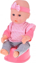 Machen Sie Kindern eine Freude mit einem durchdachten Pflegeset für die Puppe. Enthalten sind eine Babypuppe mit beweglichen Gliedmaßen und weicher Kleidung, ein praktisches Reisebett mit Hülle, eine bequeme Wippe mit Sicherheitsgurt, eine Spielmatte mit Bogen und ein klappbarer Kinderwagen – „Schirm“. Dazu kommen Töpfchen, Fläschchen, Schüssel mit Löffel und Gabel, Rassel, Schnuller an Kette, Creme- und Toiletten-„Dosen“ sowie eine Tasche für Zubehör.