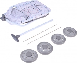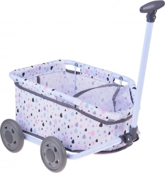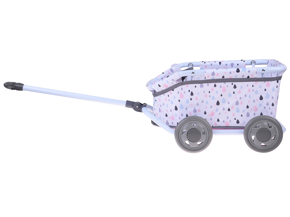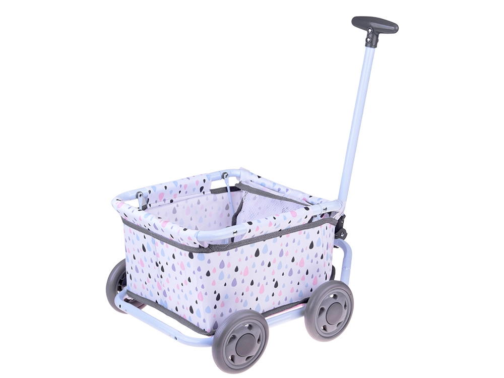 Dieser stilvolle Wagen mit pastellfarbenem Tropfenmuster ist ideal für den täglichen Spielspaß, für Spaziergänge in der Wohnung und im Garten. Die leichte Metallkonstruktion und der weiche Stoffkorb bieten bequemen Platz für Puppe, Kuscheltier und kleine Accessoires.