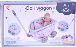 Textilwagen zum Ziehen für Puppen und Kuscheltiere mit Tasche und langem Griff