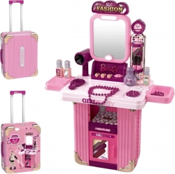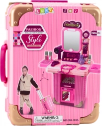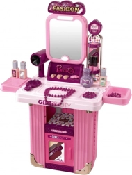 Stylische 2-in-1-Kindertoilette im praktischen Koffer, die sich nach dem Aufklappen in einen zauberhaften Schminktisch verwandelt. Bietet ein beleuchtetes Spiegelchen, Soundeffekte und umfangreiches Zubehör für das Spiel im Schönheitssalon. Leicht und mobil dank Rädern und ausziehbarem Griff, hergestellt aus sicheren Materialien – fördert Kreativität, Vorstellungsvermögen und Feinmotorik.