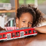 Entdecken Sie die Schönheit des modernen Zugmodells mit diesem 45 cm langen Zug. Er ist aus robustem Kunststoff gefertigt und für langanhaltenden Spaß konzipiert. Das detailreiche Interieur und das durchsichtige Dach ziehen Sie in die Welt des Schienenverkehrs.