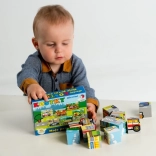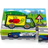 Zwölf Bilderwürfel ermöglichen das Zusammenstellen von 6 verschiedenen Bildern. Setzen Sie Busse, Krankenwagen oder Polizeiautos zusammen!