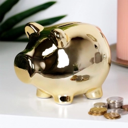 Keramische goldene Spardose in Schweinchenform 11,5 × 9 cm